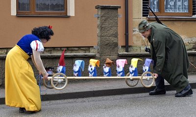 V letošním roce jsme se s maskami prošli Z pohádky do pohádky. Kromě tří Karkulek, vlka, myslivce a babičky jsme potkali Boba s Bobkem, Křemílka a Vochomůrku, Tři prasátka, Čerta a Káču, Krtečka (s jeho kamarádkou myškou), Dlouhého, Širokého a Bystrozrakého, Sněhurku a sedm trpaslíků, Pipi Punčochatou a mnoho dalších pohádkových postaviček. Nechyběl ani stálý zdravotnický dozor :-)